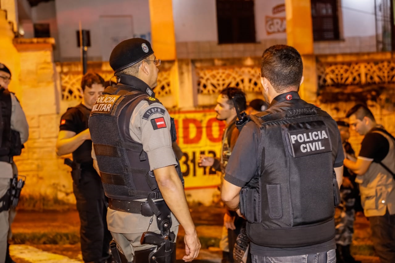 As equipes percorreram pontos estratégicos do Centro e realizaram abordagens em comércios e bares. Dois homens foragidos do sistema prisional foram recapturados.