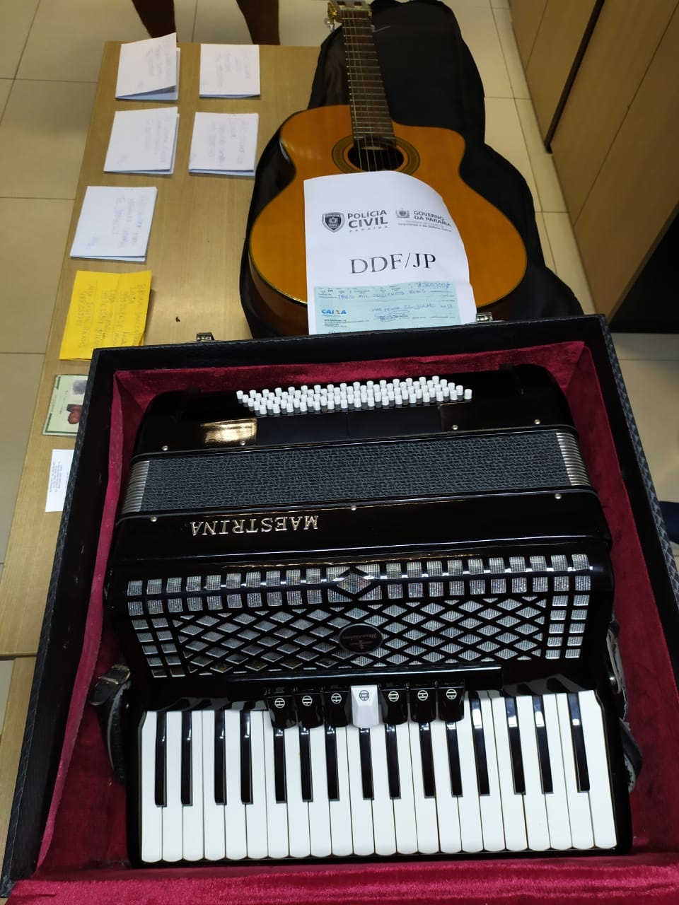 A equipe da DDF ainda conseguiu recuperar objetos adquiridos das vítimas por meios fraudulentos. Entre esses itens, há uma sanfona marca Maestrina de 80 baixos e um violão.