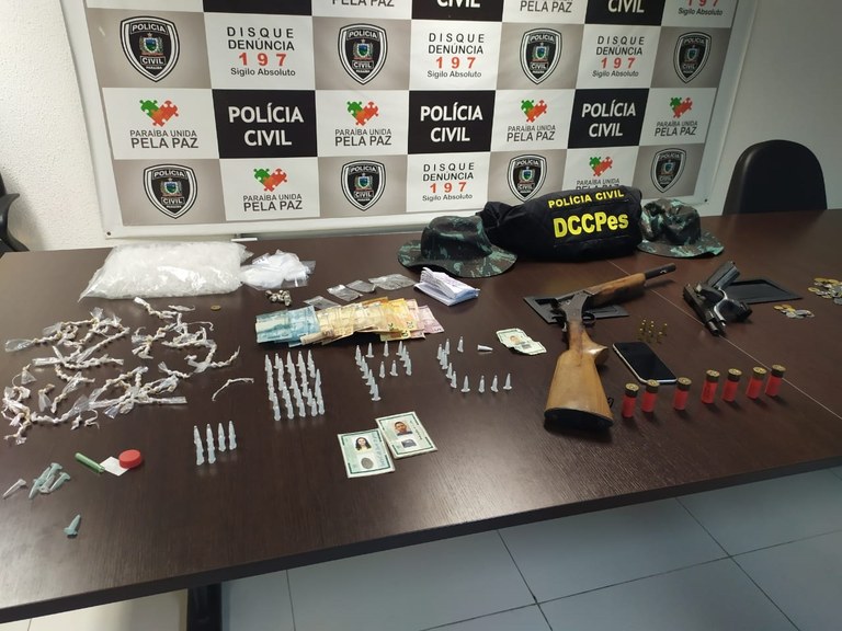 Armas, munições, drogas e dinheiro em espécie foram apreendidos pela Polícia Civil durante uma ação realizada na tarde desta quarta-feira (17) no bairro de Mandacaru, em João Pessoa.